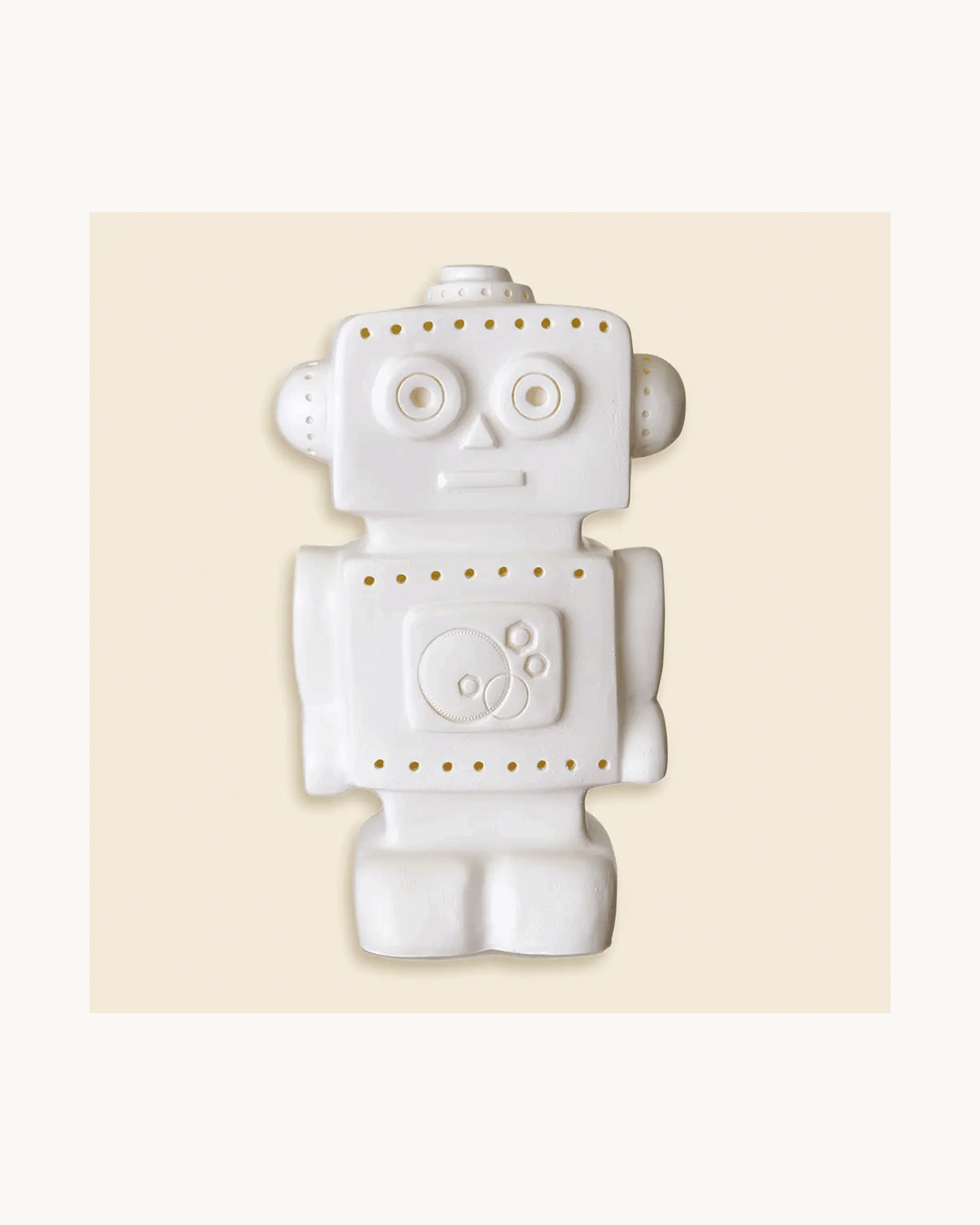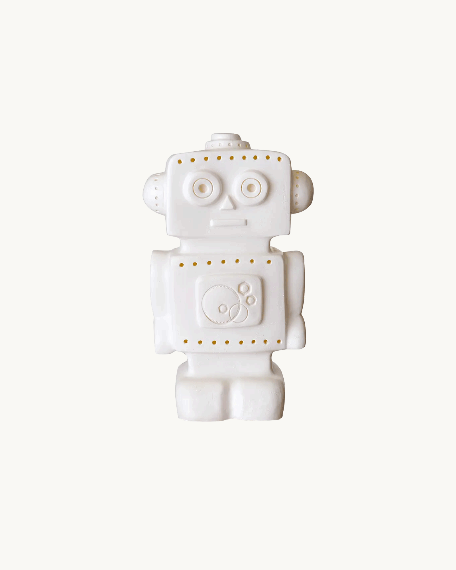 The Robot Lamp is perfect for your kid's room or baby's nursery. Its large size makes this lamps perfect by the bed on the floor or on a little side table, or maybe in the window sill, if there is enough space for it there.