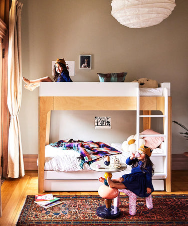 The minimalistic Perch Bunk Bed from Oeuf NYC is a great center piece for any child’s room. Its compact size leaves plenty of space for both sleep and play – and additional furniture your child may have.
