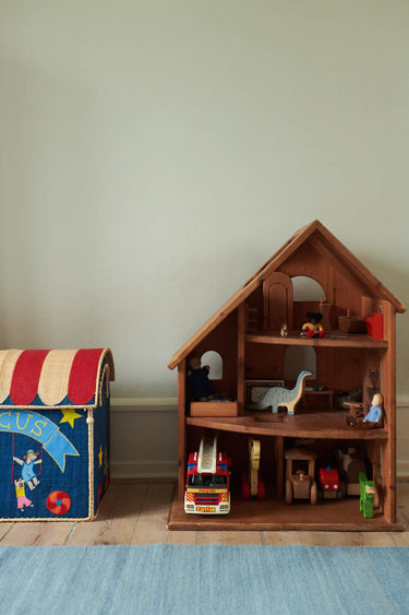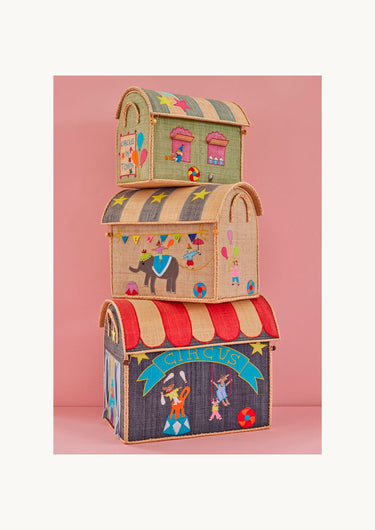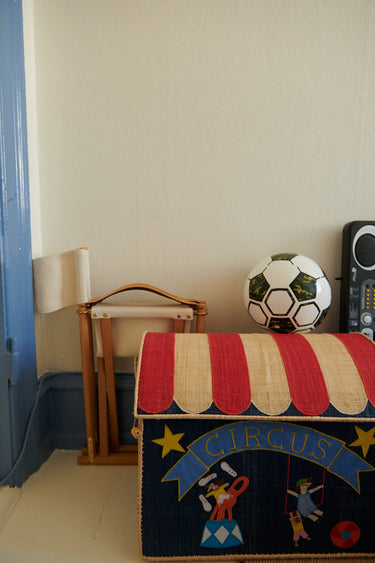 The Raffia Circus Basket is a lovely, embroidered, handmade and practical storage basket.