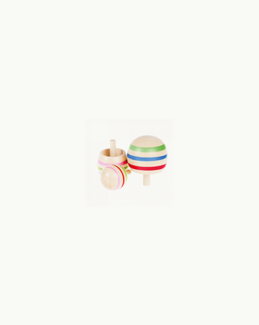Enjoy a classic game with this set of three small wooden spinning tops. Each top is painted with colorful stripes and comes in different sizes – perfect for fun play for both little ones and grown-ups.