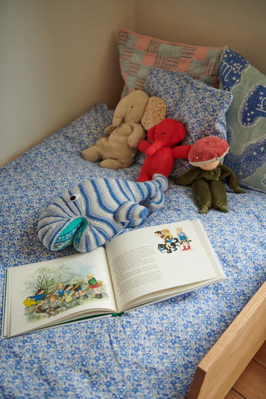 Made from 90% baby alpaca and 10% pima cotton, this whale comes with stripes and fabric details inside the mouth, and a fun little tail. It's an unusual and eye-catching teddy/toy, and most definitely a keeper well beyond the nursery years.