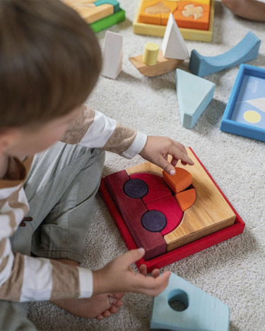 A beautiful building set/puzzle in shades of blue from German brand Grimm's. This set may be used both as a puzzle and as a building set with endless possibilities.