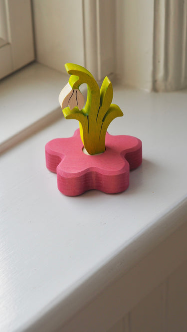 This pink flower candle holder is wonderful on birthday tables or for easter or spring as decoration on a window sill or on the table.