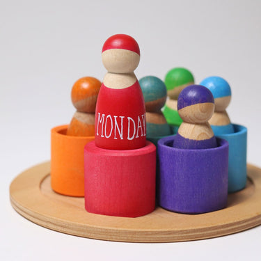 The Seven Friends in Cups can also be used as a weekly calendar as each figure is assigned a day of the week. Each one of the little hand-painted wooden figures has a different look and individual wood grain.