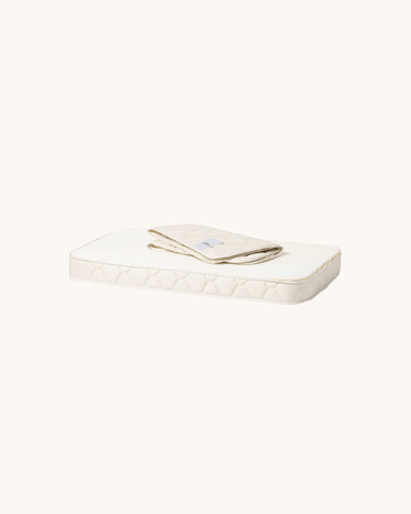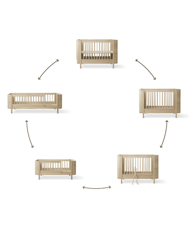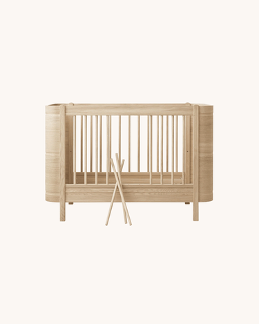 The Wood Mini+ bed complies with all European safety standards and norms. It is produced in Europe, and the wood is treated with a white-pigmented oil based on linseed, sunflower and jojoba oil.