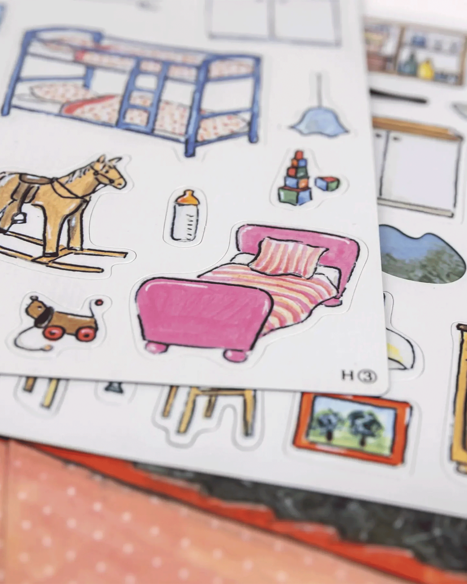 En fin og hyggelig fold-ud-bog, med magneter, som kan placeres rundt omkring i hjemmet.