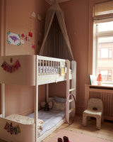 Wood Mini+ halvhøj seng er en klassisk højseng med runde bløde former, som giver sengen et indbydende og naturligt udtryk. Wood Mini+ halvhøj seng er mindre i både bredde og længde end en klassisk køjeseng, og er derfor god på de mindre børneværelser.
