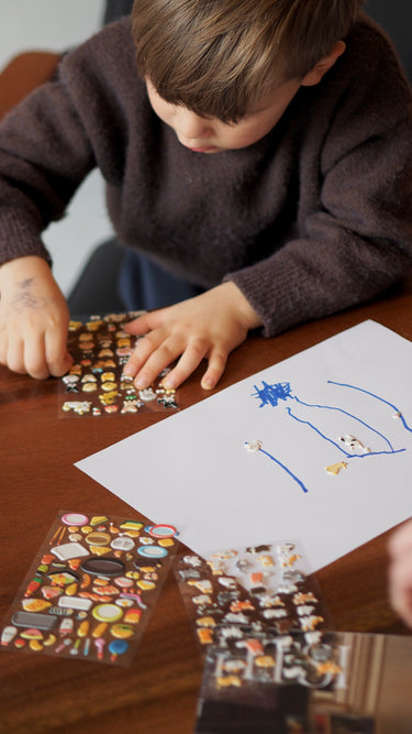 Små og bløde klistermærker der er sjove at lege med og trykke på, og som kan bruges til at gøre alt fra kort til gaveindpakning til en tegning eller madkassen lidt mere festlig.